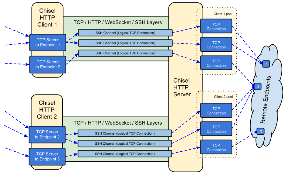 Chisel 的特点是轻量、配置简洁、单文件/容器即可运行,适合场景化临时隧道或在低资源环境下长期运行。