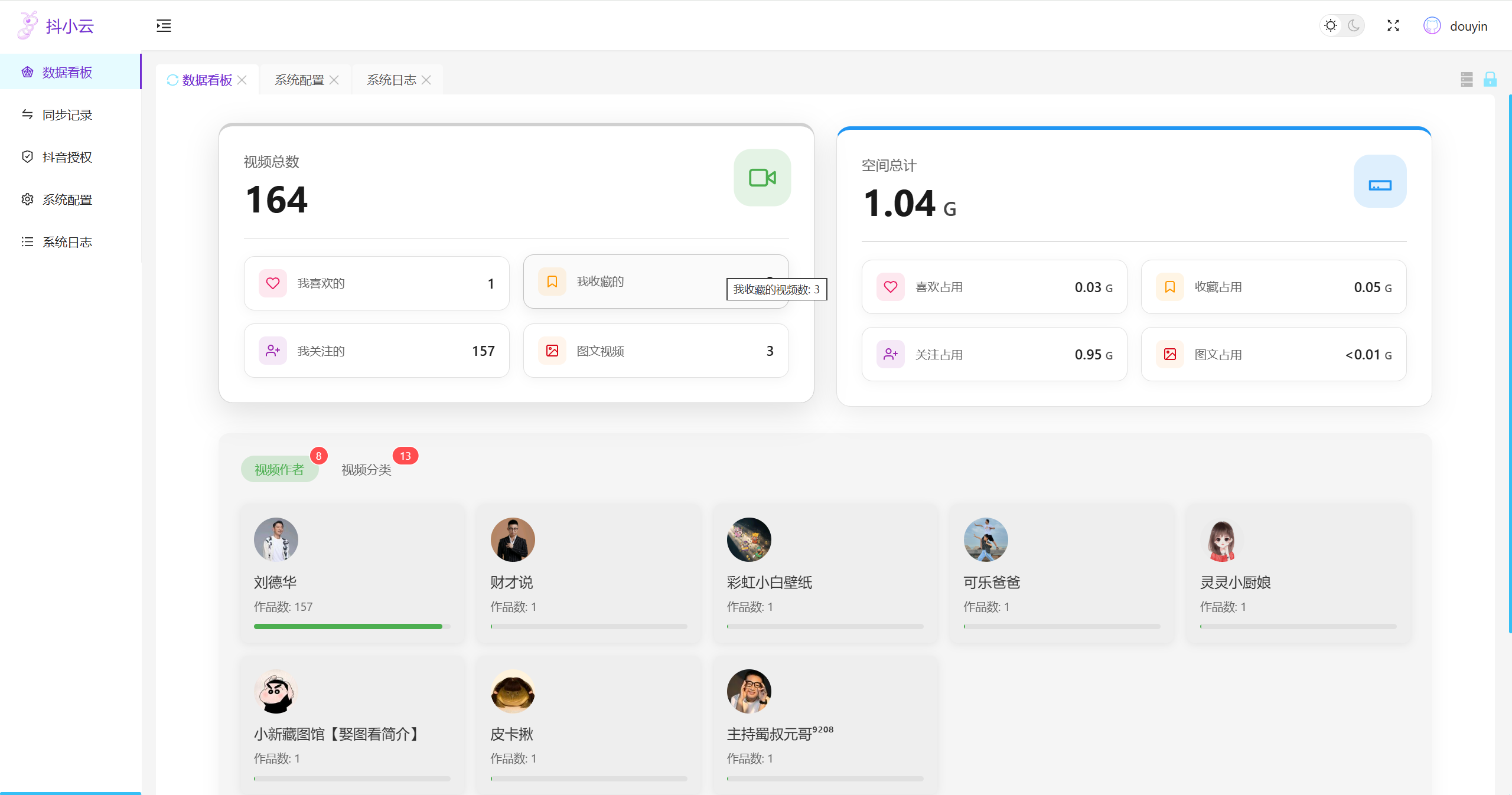 dysync.net(抖小云)是一款基于 .NET Core 与 Vue 的抖音视频同步工具,可将抖音收藏夹、「我喜欢」的视频以及指定博主作品批量同步至本地存储,并支持基础的刮削与元数据生成,方便在 Emby/Jellyfin 等媒体库内直接浏览与播放。应用提供 Web 管理界面与任务功能,便于按频道/用户/关键词进行抓取与定时同步,非常适合在 NAS 环境中做短视频归档与分类管理。