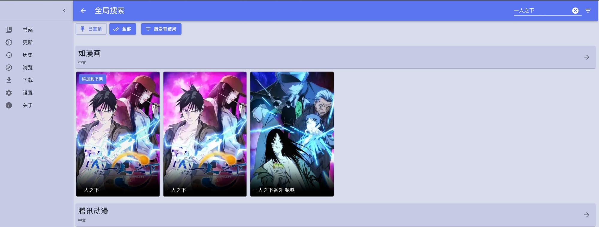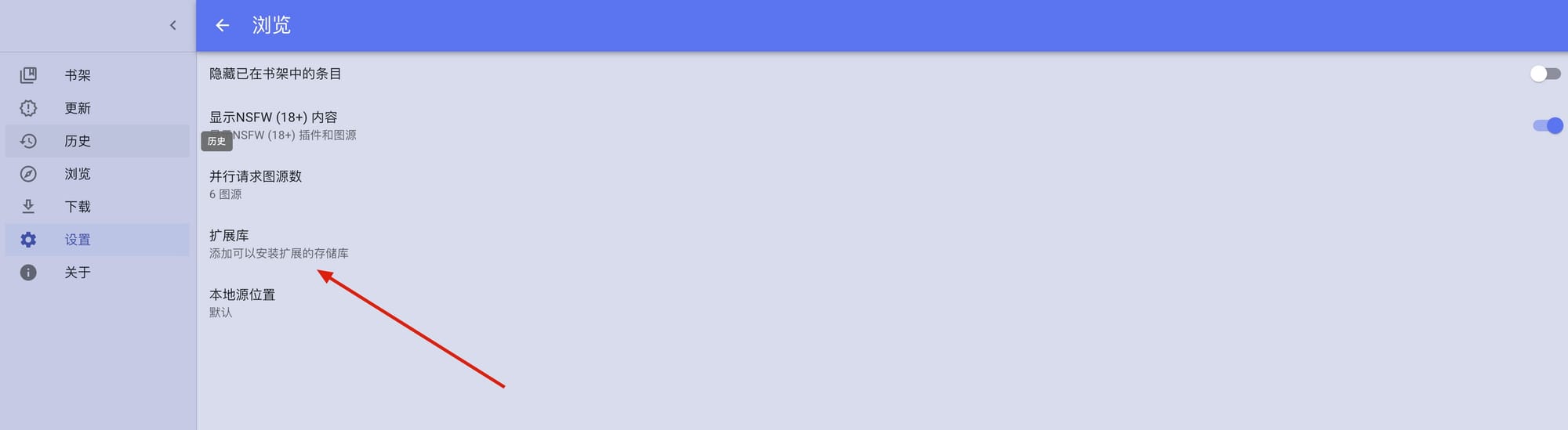在设置-浏览-扩展库 中添加源,添加后即可阅读海量热门漫画。