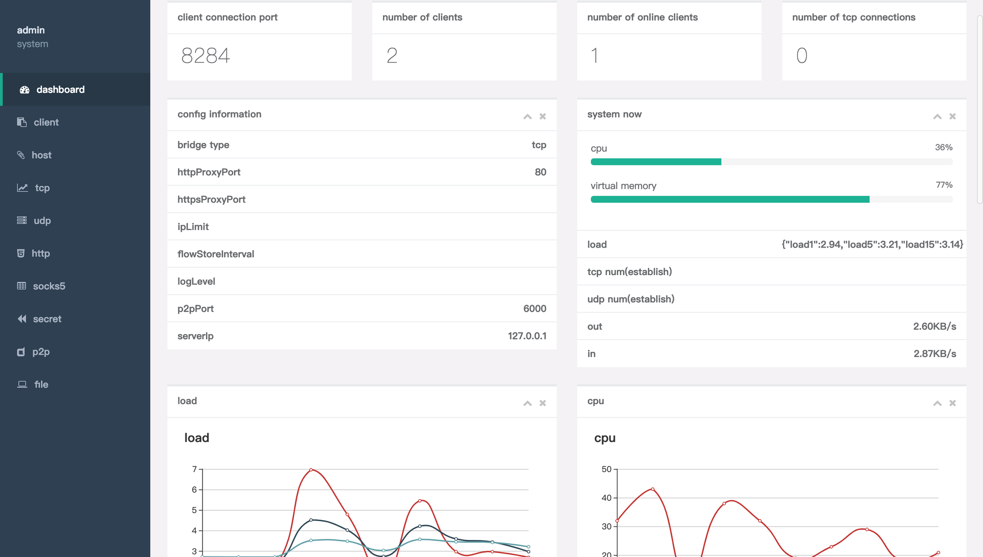 - 第一次启动 nps 后,访问 http://云服务器IP:8024 登录管理后台,创建客户端并获取 vkey