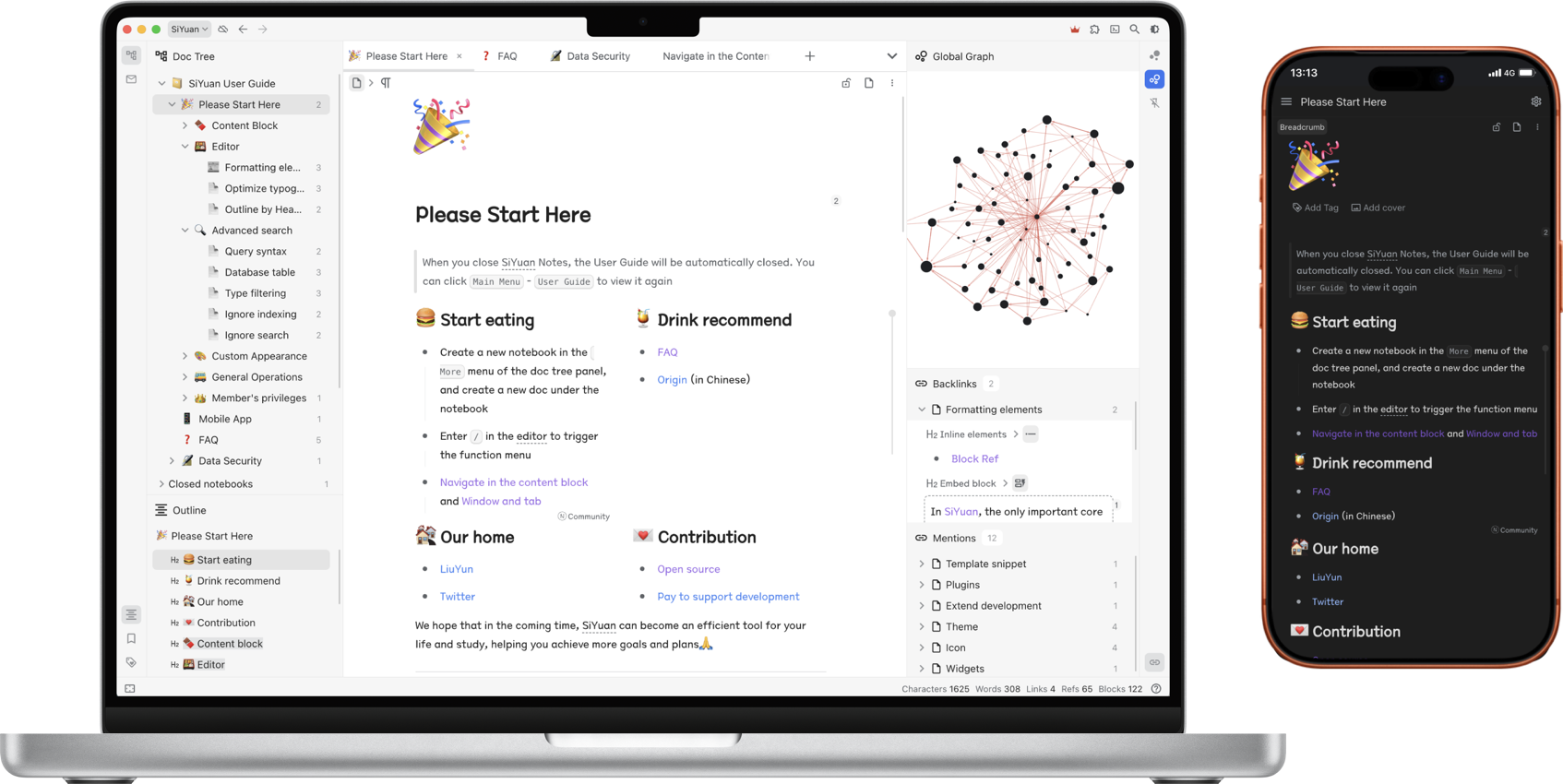 思源笔记是一款隐私优先的个人知识管理系统,支持细粒度块级引用和 Markdown 所见即所得。